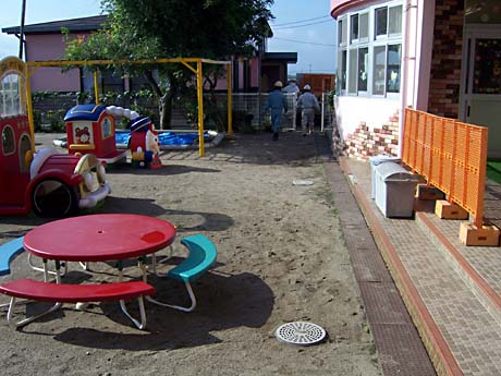 人工芝で園庭全体がにぎやかな遊び場になりました。