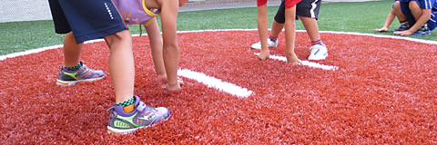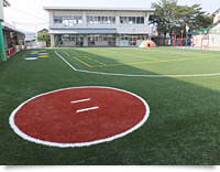 今の子どもたちは、昭和世代に比べて著しく体力・運動能力が低下しています。生活の利便化や生活様式の変化で身体活動量が減少したことが、低下に大きな影響を与えています。それに伴い、危険回避能力も未発達な子が増加し、顔のケガが増えています。転ぶ経験をしていないので、転ぶととっさに手を付けず、顔にケガをします。そのようなケガを未然に防ぐということで、まずハイブリッドターフPGのクッション性の良さに魅力を感じました。アンダーマットのクッション性により、寝転んだり、転んだりしても安全だということとロングパイルの人工芝ときめ細かい砂がより天然芝に近いところが気に入りました。