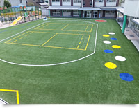 正直、天然芝と悩んだのですが、天然芝は、ある一定期間入れないという養生期間を設ける必要があり、園庭としては好ましくないと思いました。加えて、手間の問題です。養生期間と手間を考えると人工芝の方がより効果的だろうと思われたので、園庭に有効と考え採用しました。