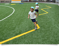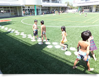 幼児期には36の基本的動作といわれる様々な動きを身につけることが大切です。その動きの中には、押したり、転んだり、回ったり、というような土のグラウンドではできない遊びの形態もありますが、ハイブリッドターフ化することによって、普通のグラウンドではできないような動作を子どもたちがするようになりました。この効果が、体力・運動能力テストの結果などにどれだけ反映されるかということは今後も調査していきたいです。
