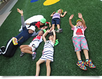 施工する前は、全く寝ころがったり、座ったりということはなかったです。しかし施工後は、仕掛けも採用した効果もあり、みんなが園庭に集まってくるようになりました。特に、遊びを自分たちで創造できる年長児が、よく平地(芝の上)で遊ぶようになりました。ゴロゴロ転がったりする動作が見てとれるようになりました。子どもたちは仕掛けに対しても非常に面白い反応を示します。1人でも、自分から挑戦してみようとしている光景がありますね。