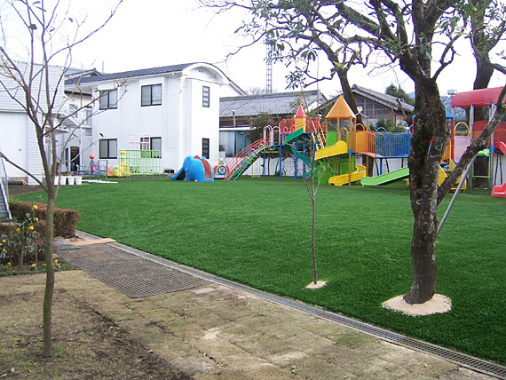 園庭・公園用ロングパイル人工芝(緩衝材付き)ハイブリッドターフPG
