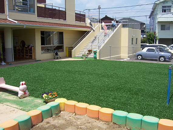 園庭・公園用ロングパイル人工芝(緩衝材付き)ハイブリッドターフPG