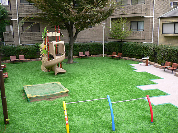 園庭・公園用ロングパイル人工芝(緩衝材付き)ハイブリッドターフPG