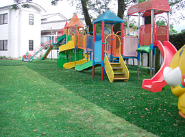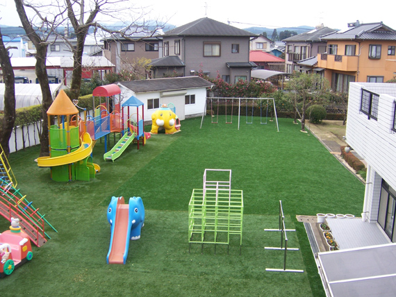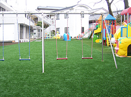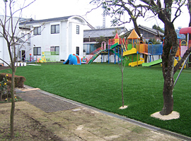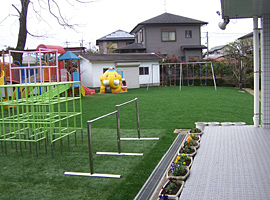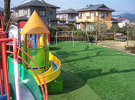しなやかで低摩擦の人工芝だからヤケドやすり傷の発生を低減。はだしで思いっきり走り回れます。